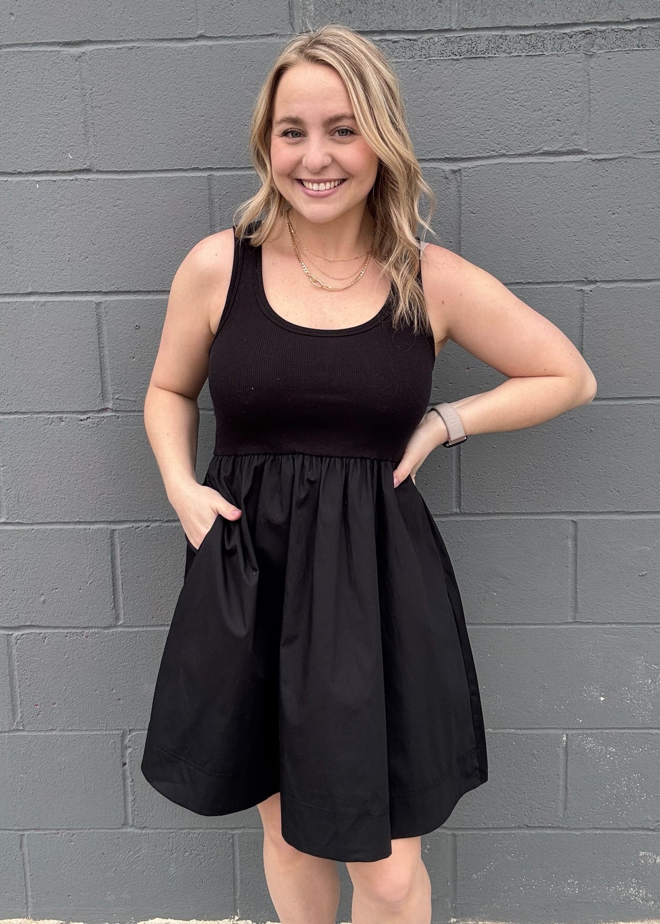 Introducing the Bright Idea in black, a versatile dress with wide straps so you can wear a normal bra comfortably. Whether you're heading to brunch or a night out, this charming dress can easily be styled to suit any occasion, making it a fantastic addition to your wardrobe for this spring and summer!