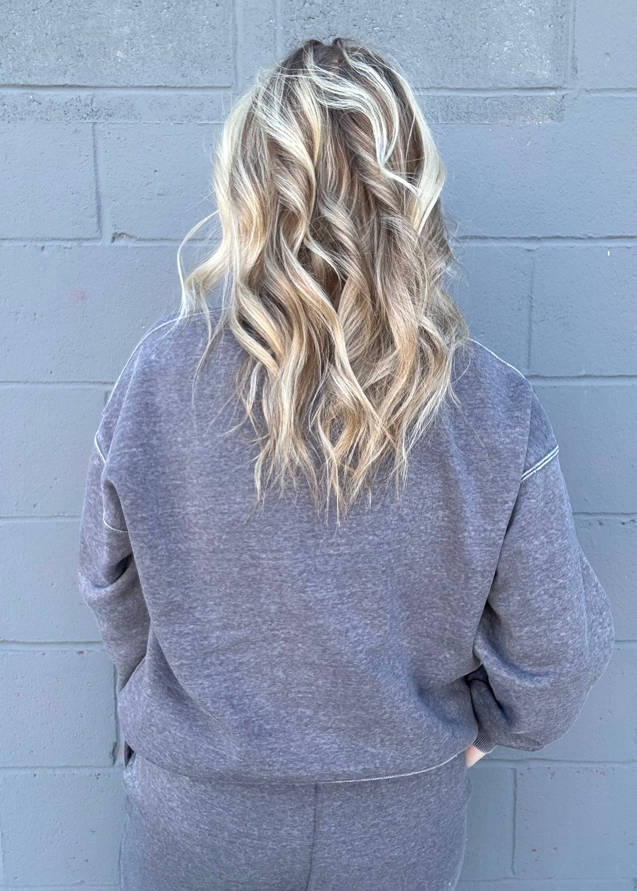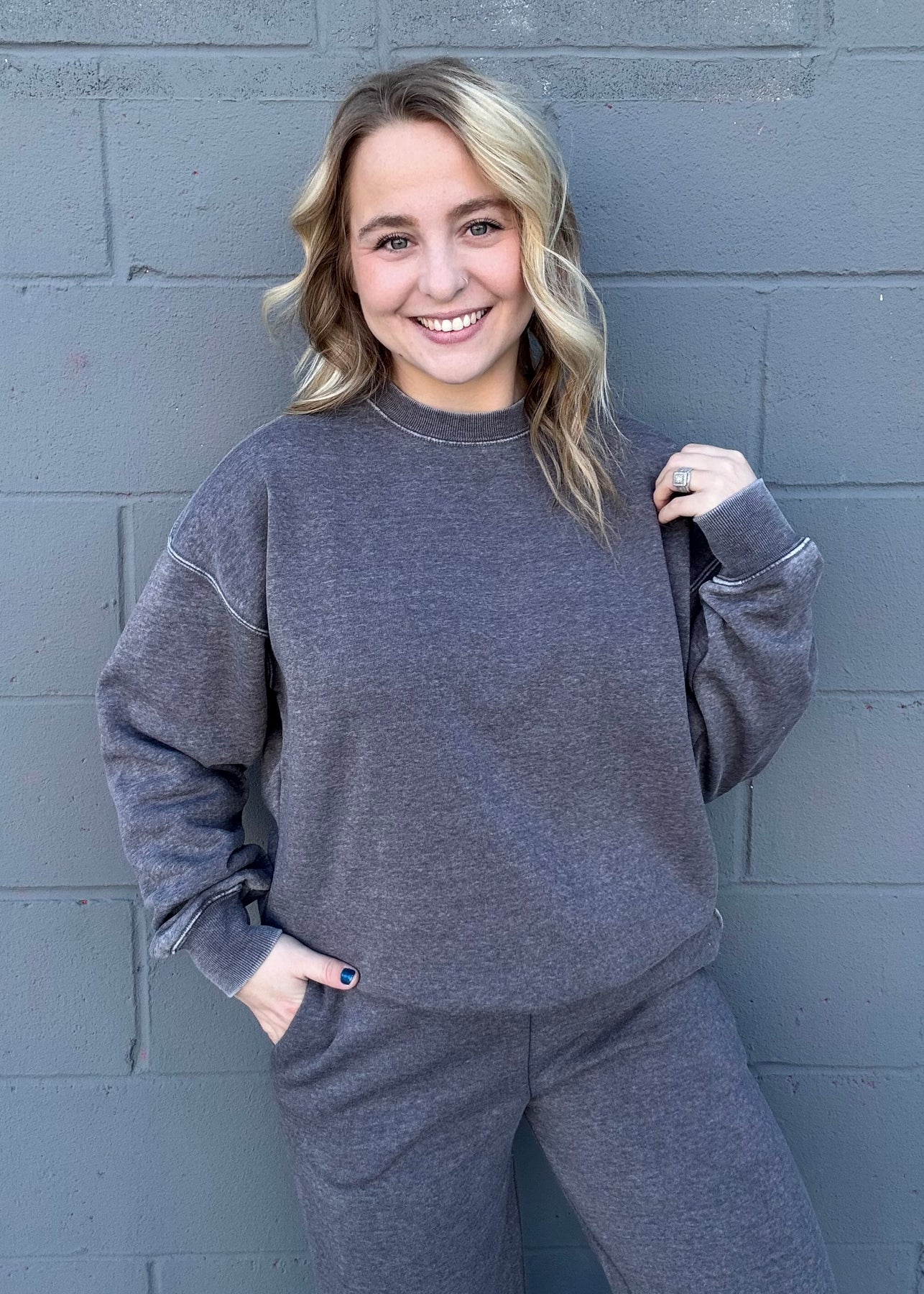 Your new lounge essential. This oversized crewneck in soft heather grey delivers pure comfort with its relaxed fit making it perfect for cozy days at home or casual outings. Undeniably comfy this set is a must for your closet!